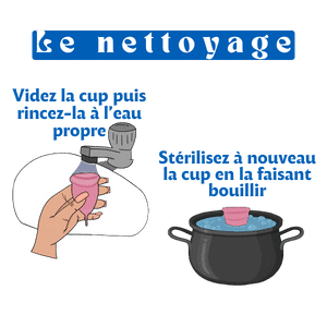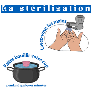 Avant la première utilisation, stérilisez la cup menstruelle en la faisant bouillir dans de l’eau pendant quelques minutes.Lavez-vous bien les mains.