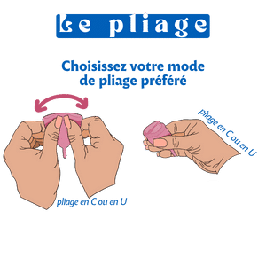 Pliez la cup en suivant les instructions fournies par le fabricant.La méthode de pliage la plus courante est la méthode en « C » ou en « U » : écrasez la cup et ramenez chaque côté l’un sur l’autre pour former un C/U.