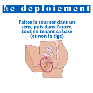 Etape 4 : le déploiementUne fois la cup insérée, faites la tourner dans un sens, puis dans l’autre, tout en tenant sa base (et non la tige).Si la cup est correctement positionnée, elle devrait tourner aisément. Une fois en place, la cup menstruelle s’ajuste aux parois du vagin.Elle devrait reposer juste en dessous du col de l’utérus.Assurez-vous qu’elle est correctement scellée en passant un doigt autour du bord pour vous assurer qu’il n’y a pas de plis.