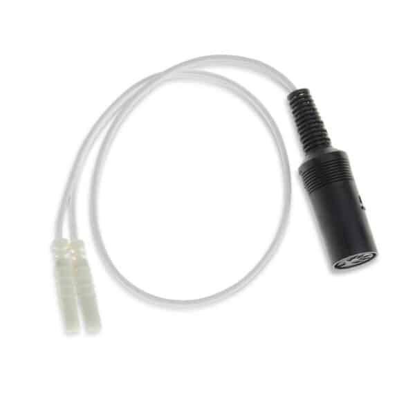 L'embout DIN 3 broches femelle d'un côté du cordon permet une connexion sécurisée à la sonde, tandis que de l'autre côté, deux fiches bananes femelles de 2 mm garantissent une compatibilité étendue avec différents dispositifs médicaux.