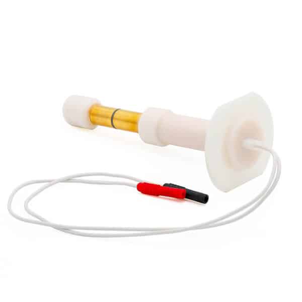 – 1 sonde ANALIA ® : sonde anale courte à deux électrodes circulaires spécialement conçue pour offrir une stimulation électrique ciblée. La présence d’une butée arrière inter-fessiers contribue à bloquer la sonde contre les muscles fessiers, réduisant ainsi le risque d’aspiration ano-rectale. La sonde ANALIA existe en connexion BANANE.